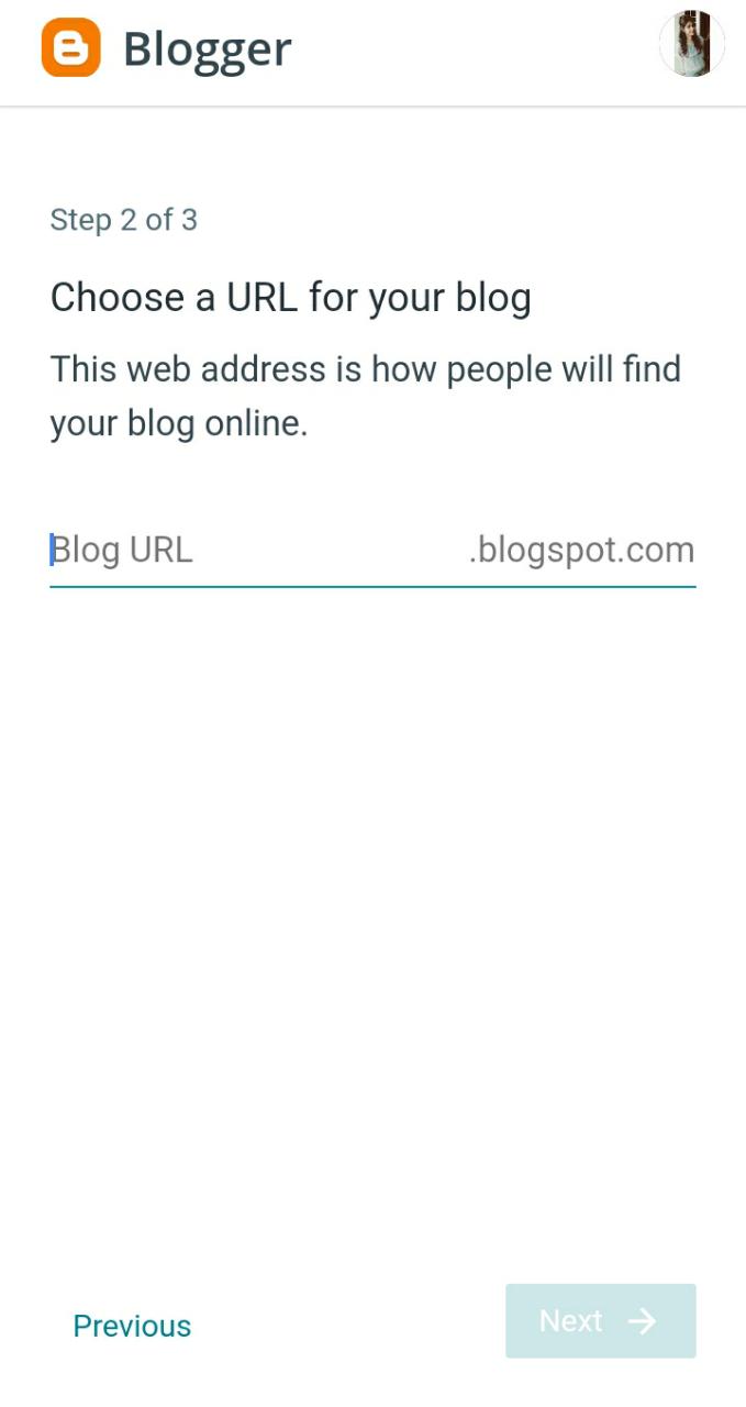 Step 5 : This is the final step. Choose a URL for your blog which helps people search you on Google, chrome, browser etc.