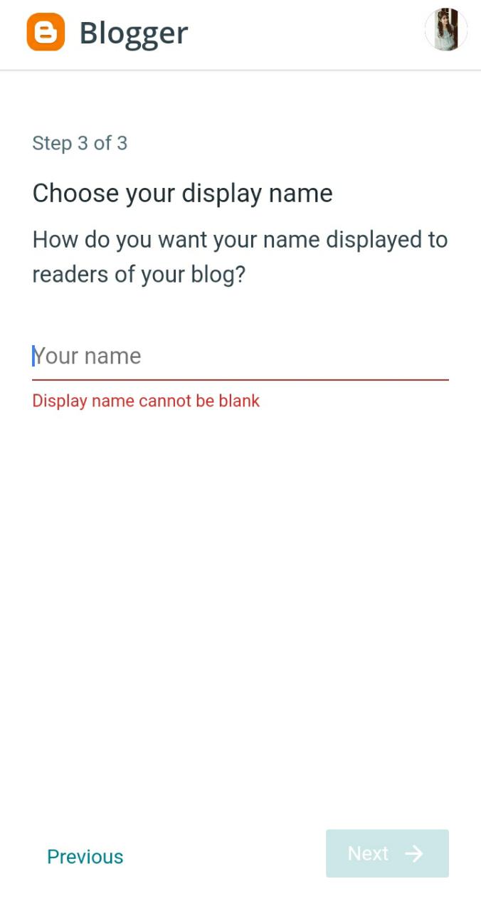 Step 4 : Next, choose a display name for your blog. So, you can be known by your display name.