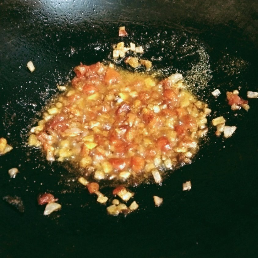 2. Put the small cuts of an onion. (Leave it until it gets a little reddish.)
