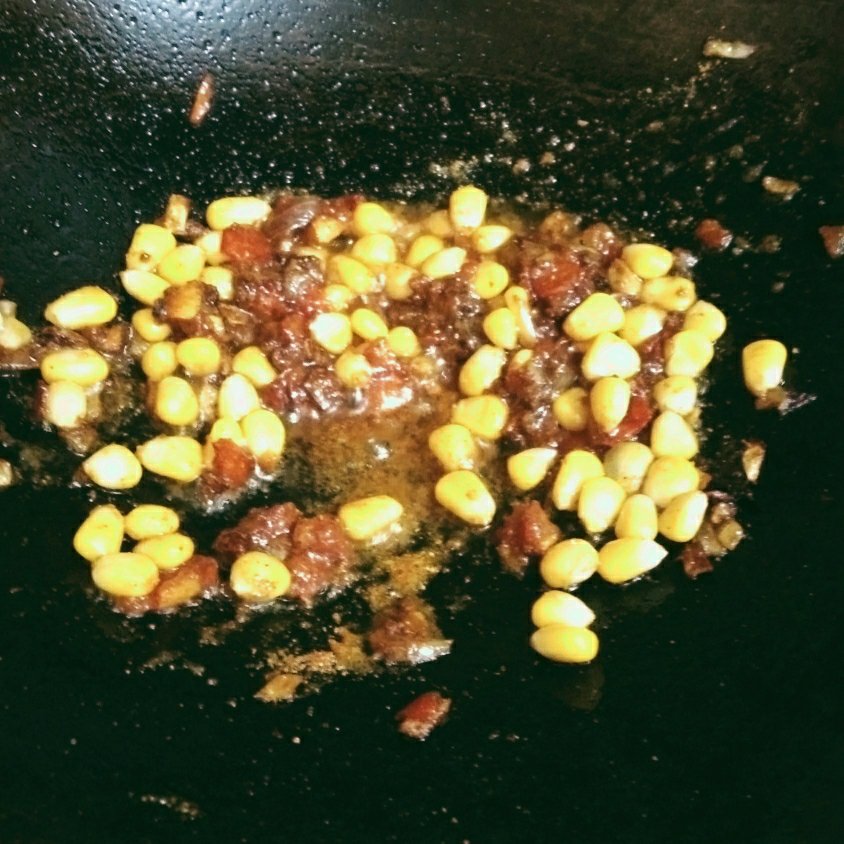 4. Now, put sweetcorn and add some spices and mix all the substance. (Put some salt according to taste.)